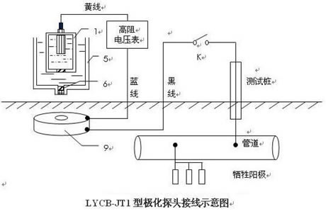 Ⅱ、通過鹽橋孔 6 由筒 1 內(nèi)置的銅/硫酸銅或鋅參比電極就可以很容易地用高阻電壓表測出鋼盤(也是地埋管道)的極化電位。由于鹽橋孔 6 的管壁很薄,半透膜微孔陶瓷與鋼盤距離很近則由此引起的 IR 降極小,在工程上完全可以忽略不計(jì),即所測出的電極電位就是管道上真實(shí)的極化電位。在電化學(xué)實(shí)驗(yàn)室為了準(zhǔn)確測量電極電位,通常要使用一支帶有魯金毛細(xì)管的鹽橋,以期使參比電極盡量靠近研究電極,從而消除 IR 降使電位測量盡可能真實(shí)。同樣 LYCB-JT1 極化探頭其鹽橋孔 6 與鋼盤 9 之間的距離(塑料管壁)也很小,僅為數(shù)毫米。實(shí)際就是工程上的“魯金毛細(xì)管”,從而使 LYCB-JT1 極化探頭能有效地抑制 IR 降。